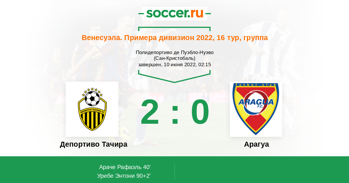 Протокол матча Депортиво Тачира против Арагуа