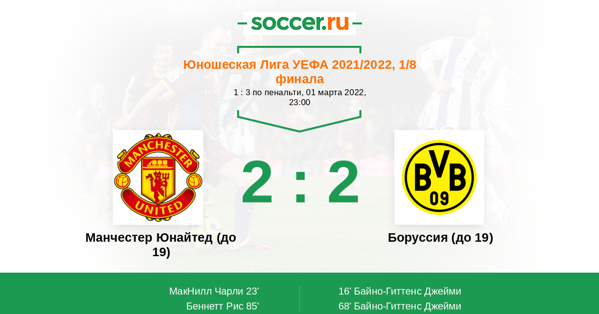 Протокол матча Манчестер Юнайтед (до 19) против Боруссия (до 19)