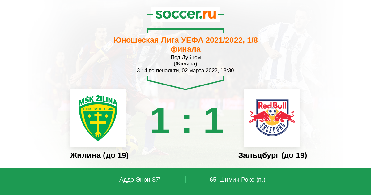 Протокол матча Жилина (до 19) против Зальцбург (до 19)