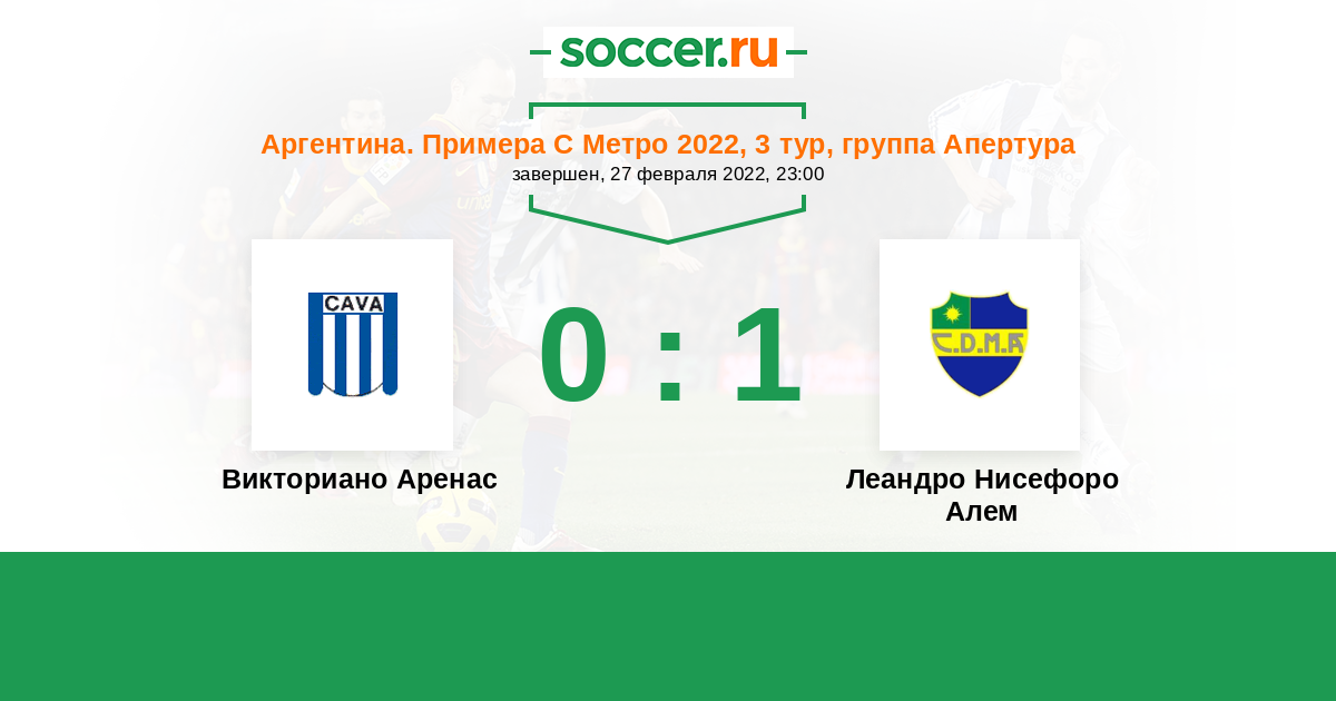 Аргентина. Примера С Метро 07.08.2021 Викториано Аренас Логотип футбольный клуб Викториано Аренас 3:0 Логотип футбольный клуб Леандро Нисефоро Алем (Буэнос-Айрес) Леандро Нисефоро Алем