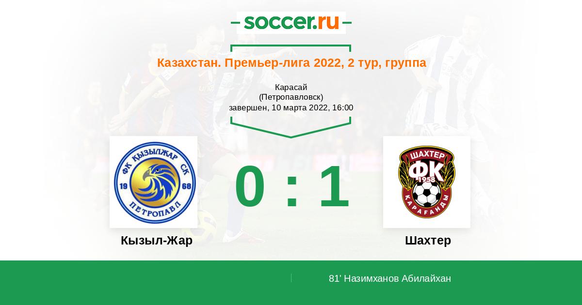Протокол матча Кызыл-Жар против Шахтер