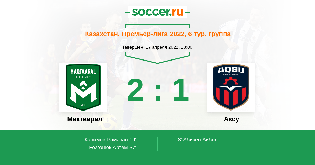Протокол матча Мактаарал против Аксу