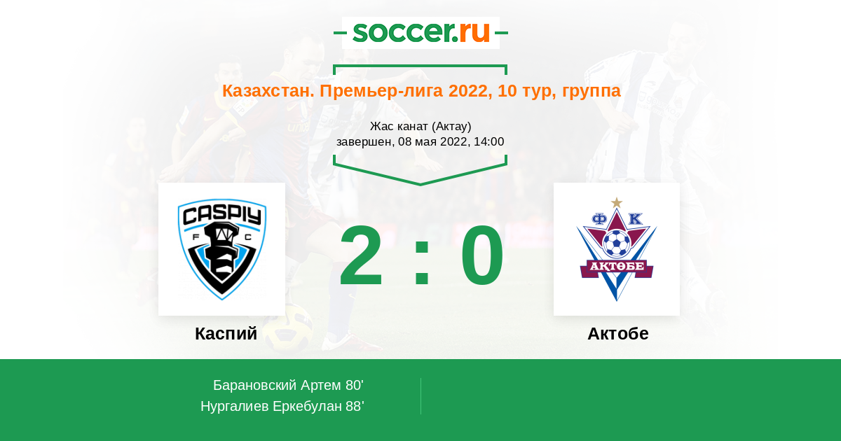 В матче встречающихся сегодня в казахстанской Премьер-Лиге команд Каспий и Актобе рискну поставить на победу хозяев потому, как они выше в турнирной таблице и на их стороне поддержка местных болельщиков.