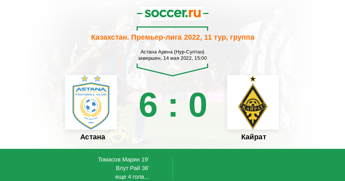 Протокол матча Астана против Кайрат