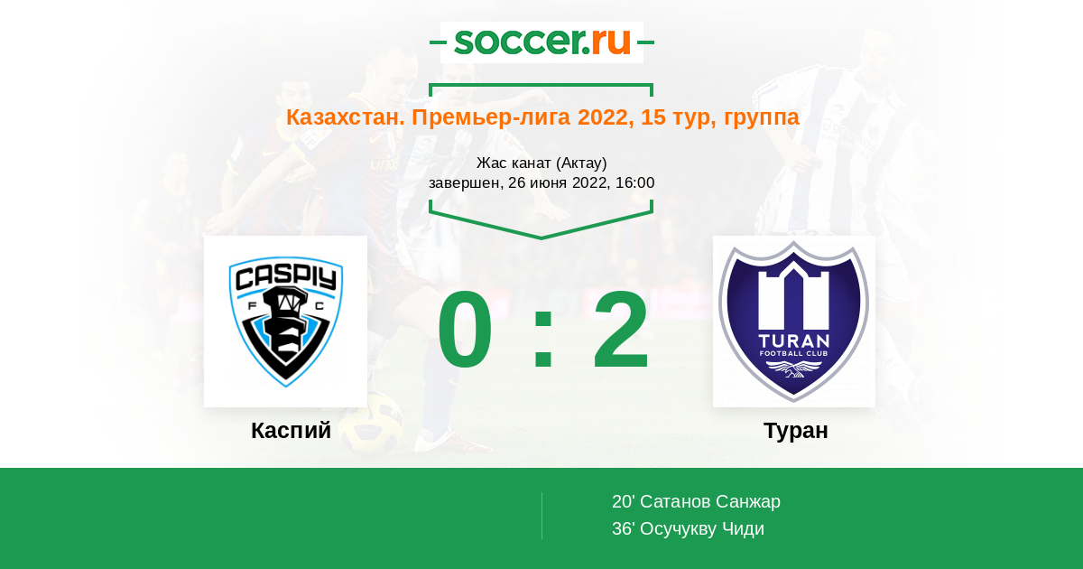 В матче встречающихся сегодня в казахстанской Премьер-лиге команд Каспий и Туран рискну предположить победу хозяев потому, как на их стороне фактор своего поля и плюс более эффективная игра в атаке.