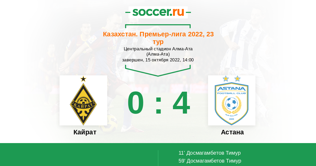 Протокол матча Кайрат против Астана