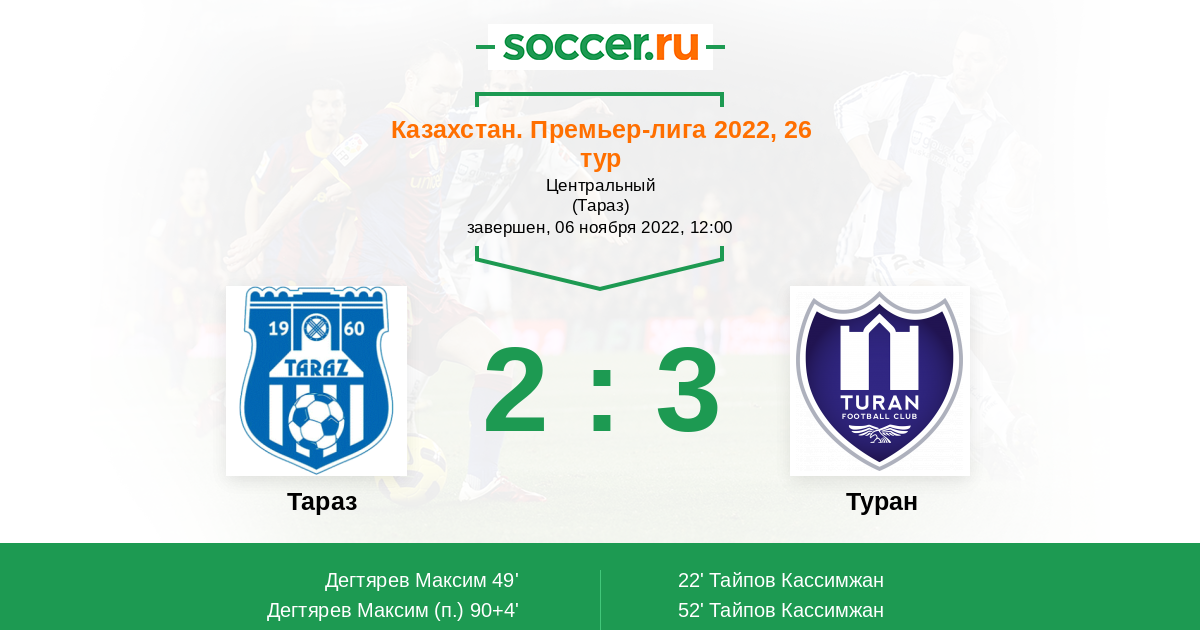 Протокол матча Тараз против Туран