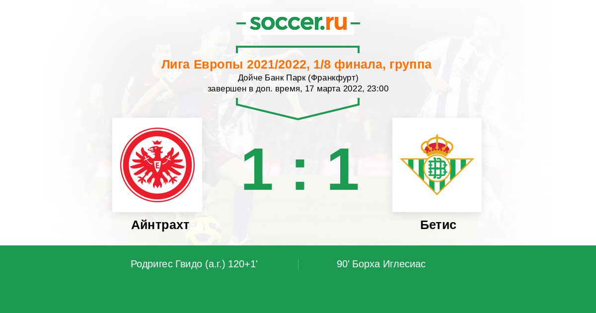 Между собой эти клубы встречались дважды и оба разе сильнее был «Айнтрахт». Так как «Бетис» бросил все силы на чемпионат страны, а «Айнтрахт» делает ставку на еврокубок, то в данной паре вновь ожидаем выигрыша немцев.