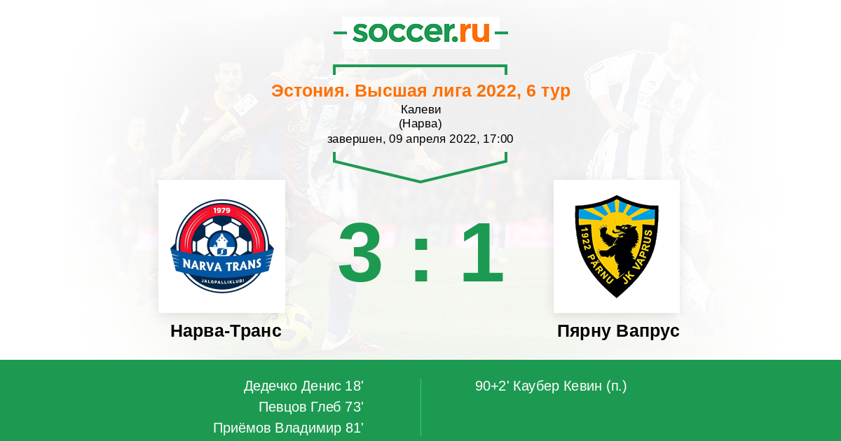 Протокол матча Нарва-Транс против Пярну Вапрус