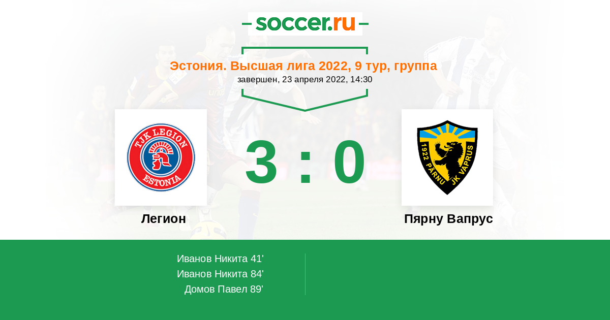 Протокол матча Легион против Пярну Вапрус