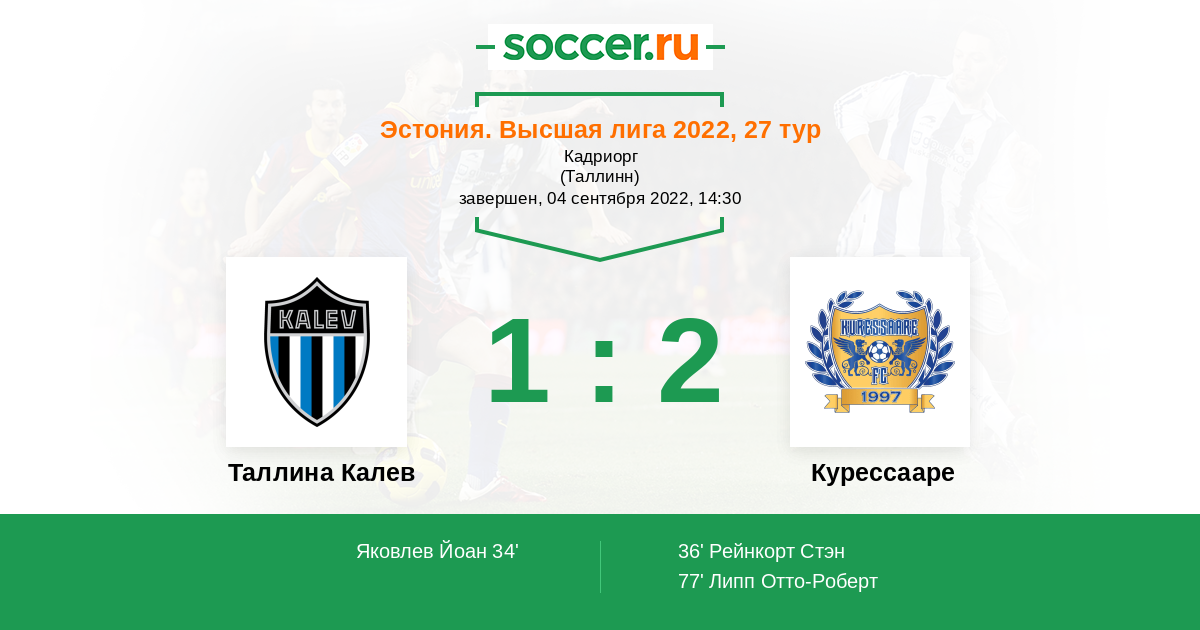 Протокол матча Таллина Калев против Курессааре