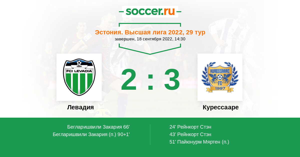 Протокол матча Левадия против Курессааре