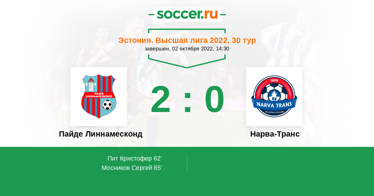 Протокол матча Пайде Линнамесконд против Нарва-Транс