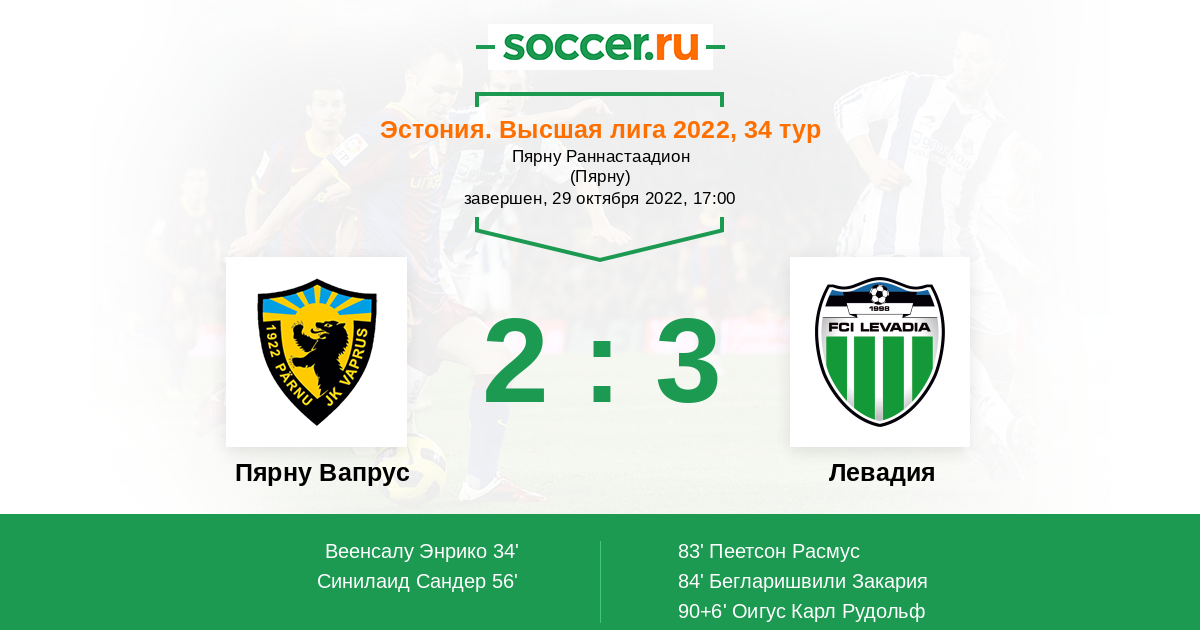 Протокол матча Пярну Вапрус против Левадия