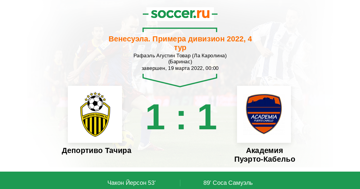 Протокол матча Депортиво Тачира против Пуэрто-Кабельо
