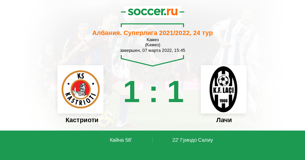 Протокол матча Кастриоти против Лачи