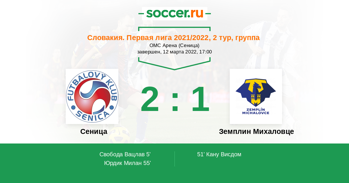 Протокол матча Сеница против Земплин Михаловце