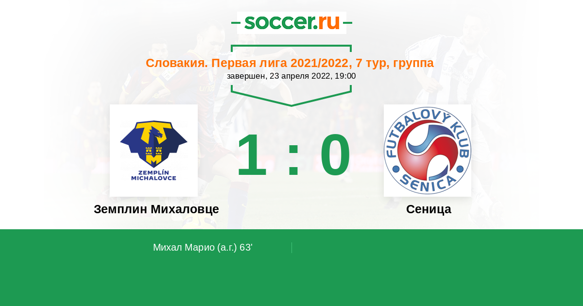 Протокол матча Земплин Михаловце против Сеница