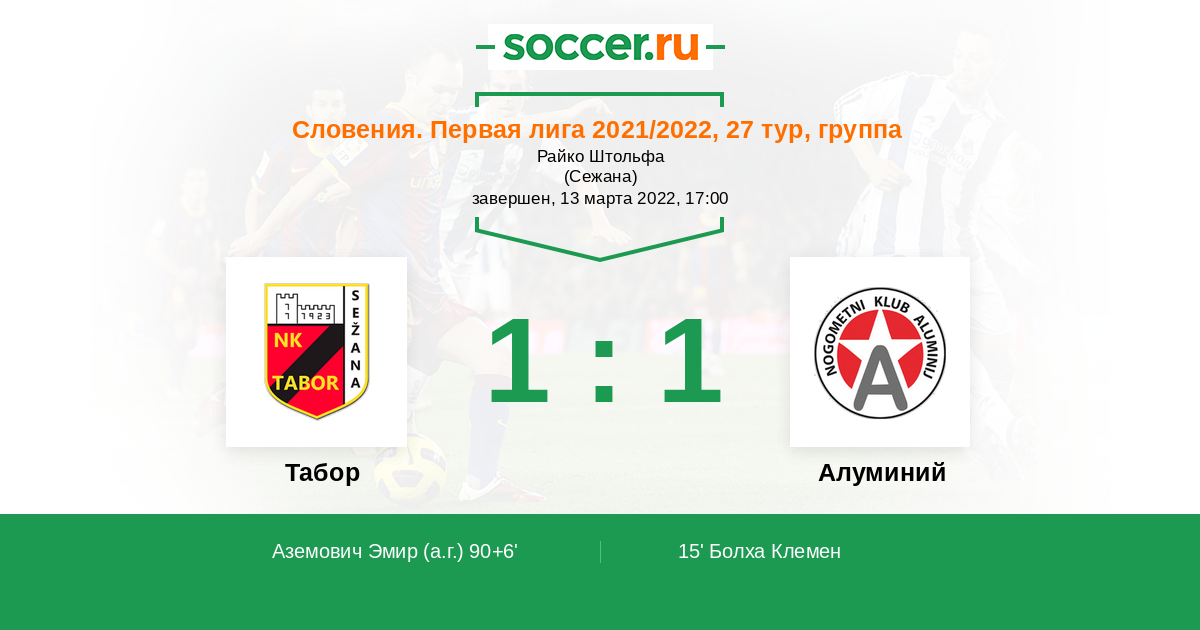 15' (0:1) Болха Клемен (19) (Шпехар Дино (7))