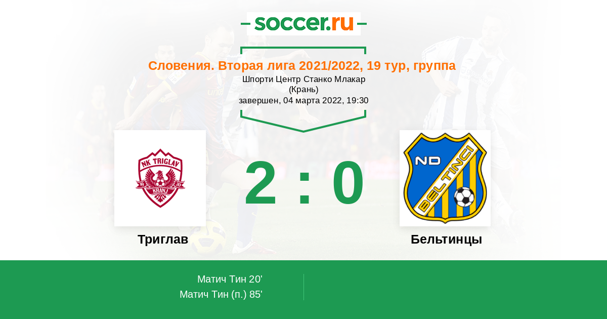 Протокол матча Триглав против Бельтинцы