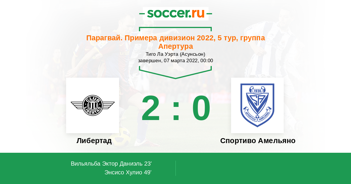 Протокол матча Либертад против Спортиво Амельяно