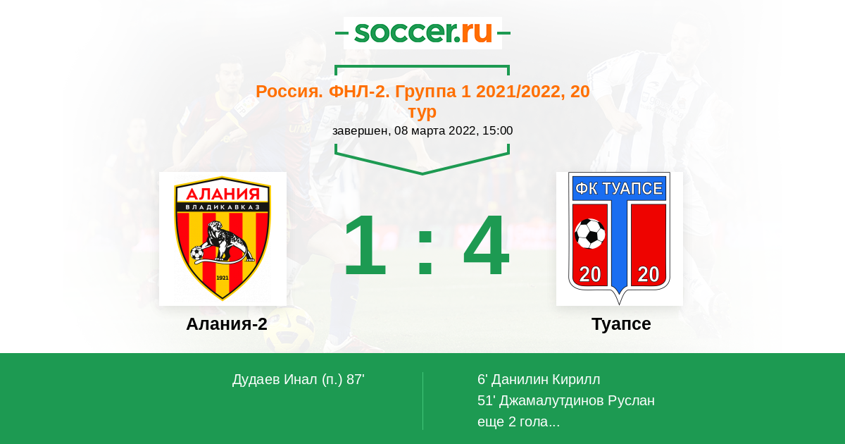 Протокол матча Алания-2 против Туапсе