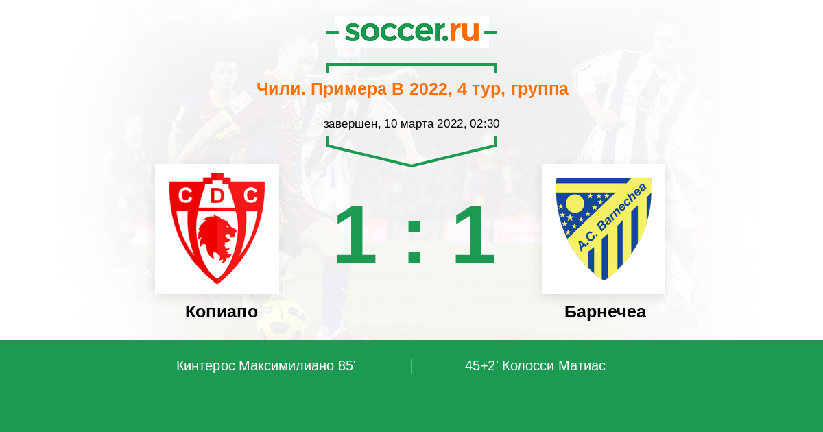 Протокол матча Копиапо против Барнечеа