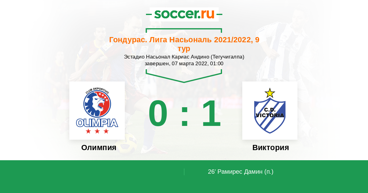 Протокол матча Олимпия против Виктория