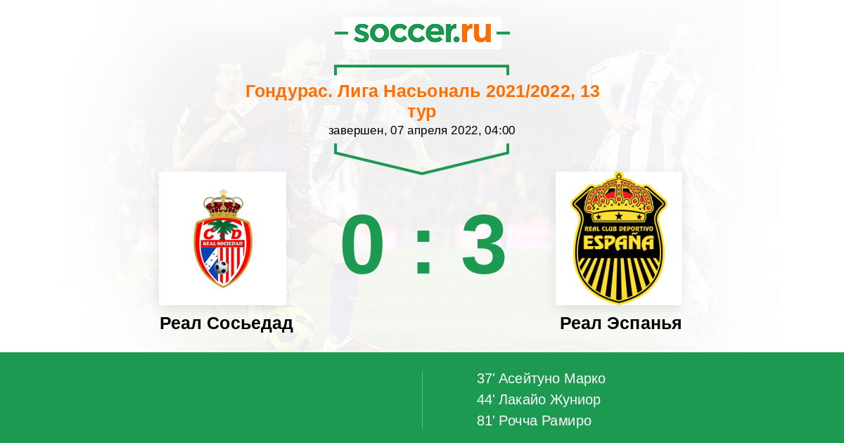 Протокол матча Реал Сосьедад против Реал Эспанья