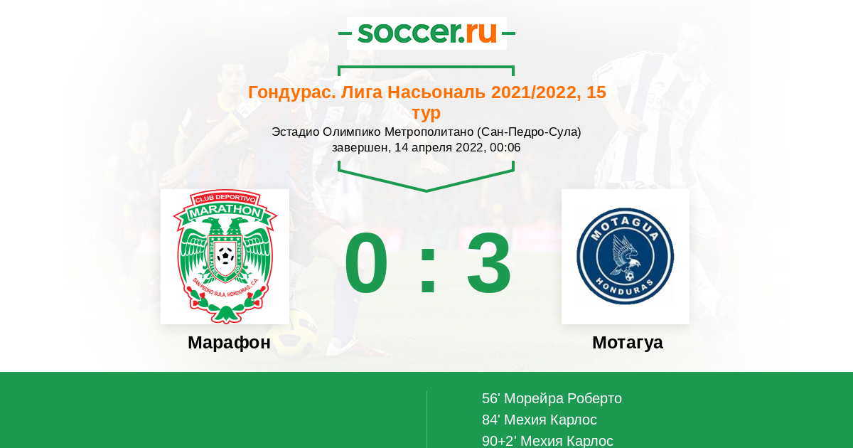 Протокол матча Марафон против Мотагуа