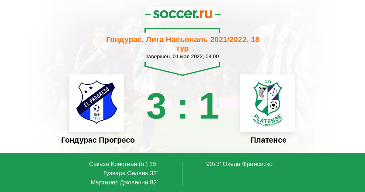 Протокол матча Гондурас Прогресо против Платенсе