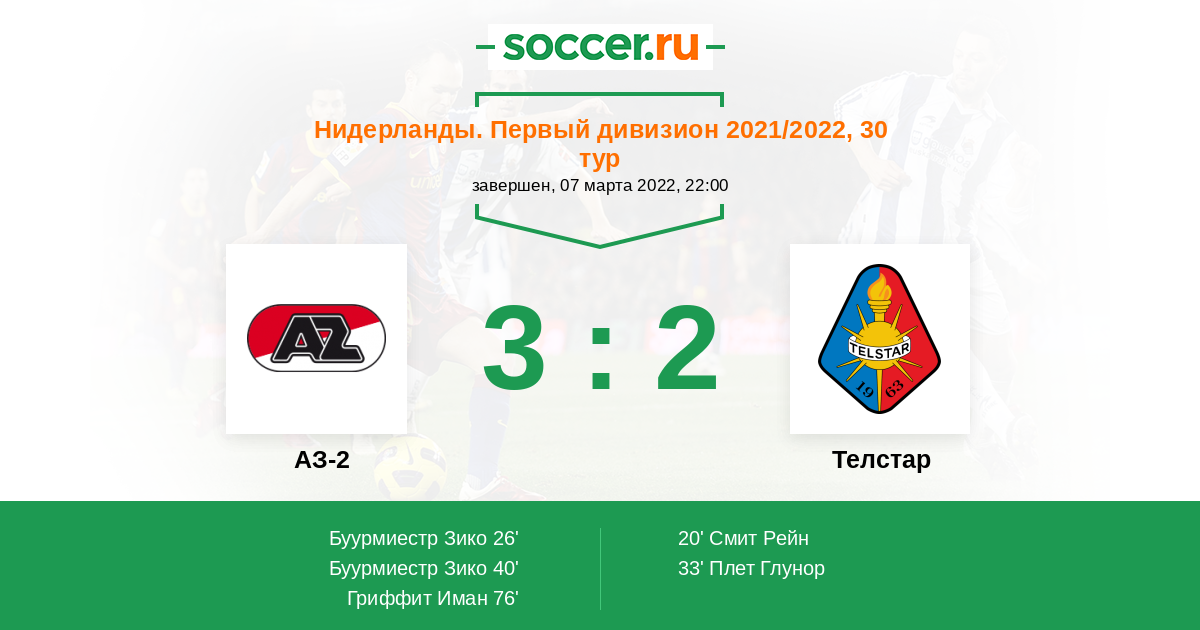 Протокол матча АЗ-2 против Телстар