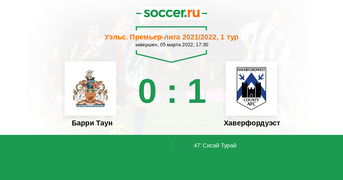 Протокол матча Барри Таун против Хаверфордуэст