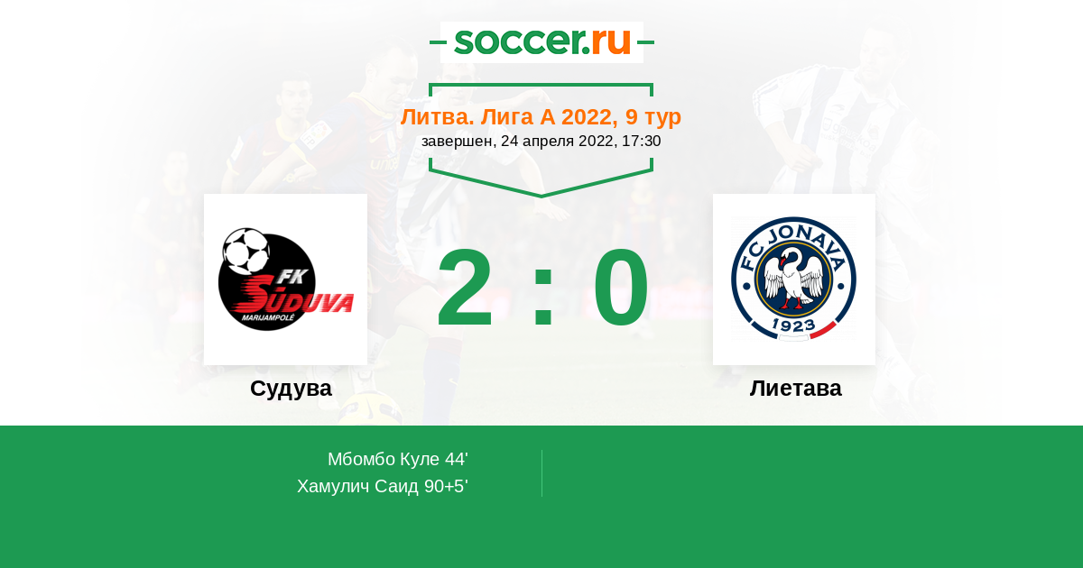 Протокол матча Судува против Лиетава