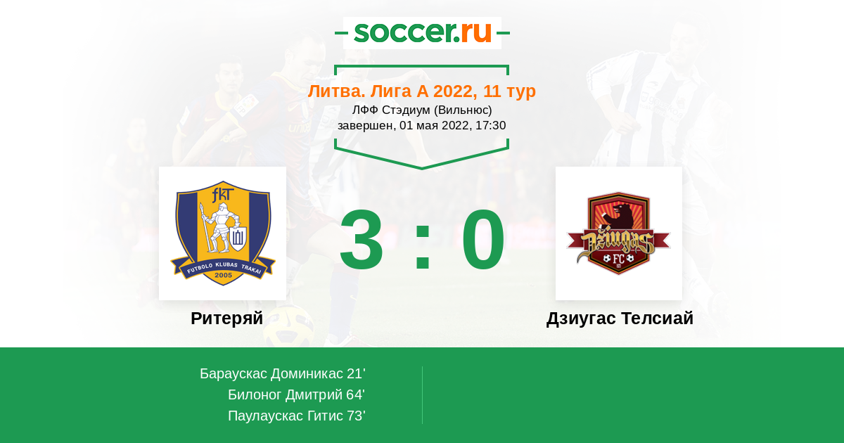 Протокол матча Ритеряй против Дзиугас Телсиай
