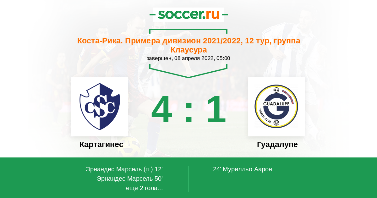 Протокол матча Картахинес против Гуадалупе