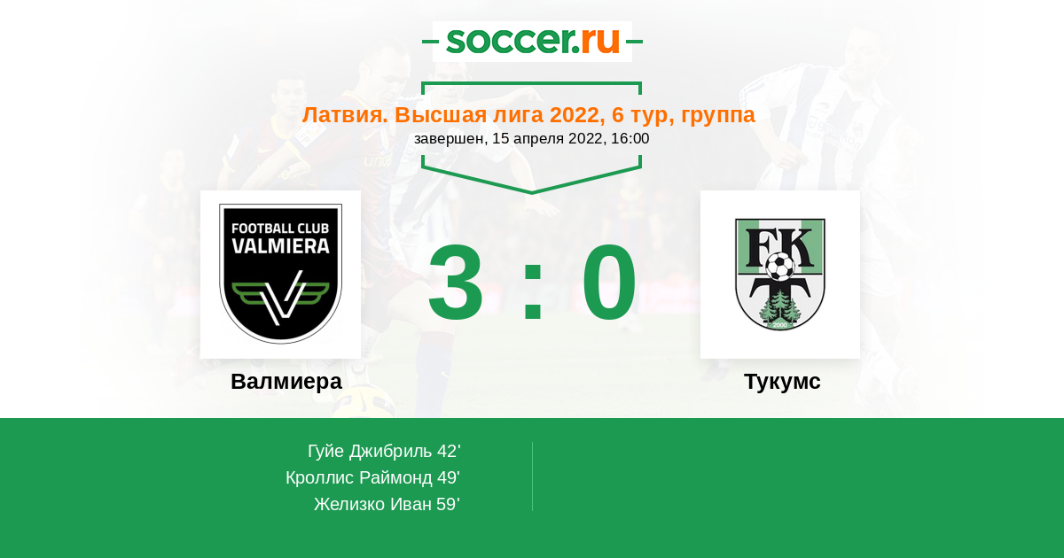 Протокол матча Валмиера против Тукумс