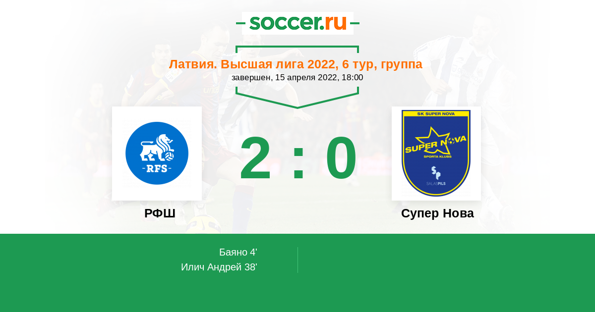 Протокол матча РФШ против Супер Нова