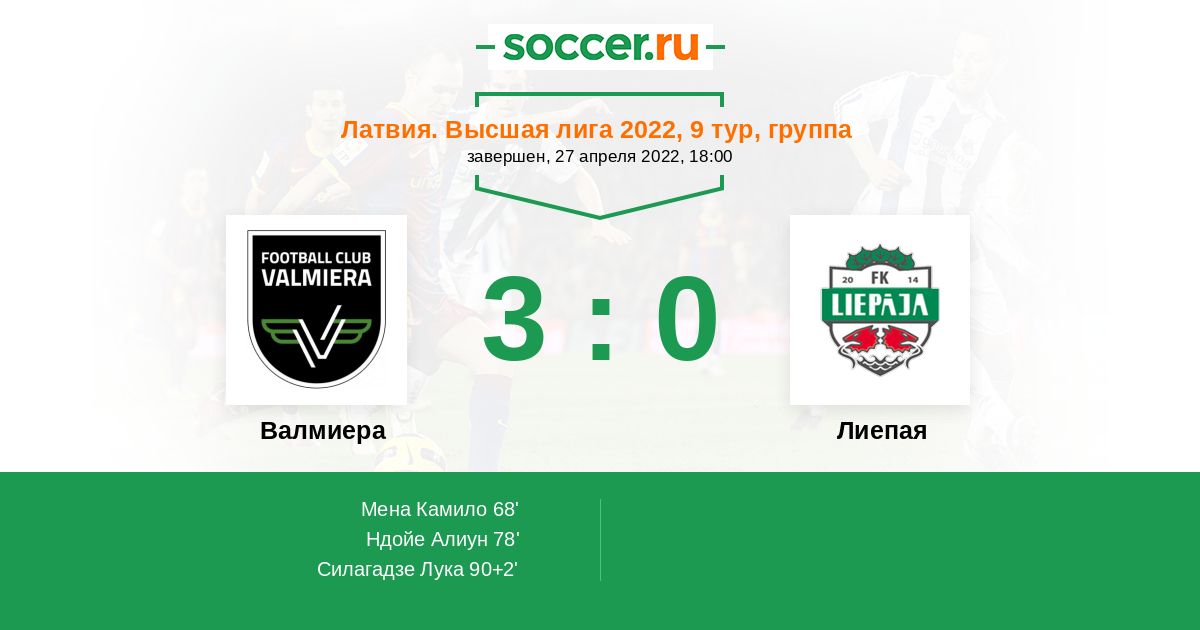 Протокол матча Валмиера против Лиепая