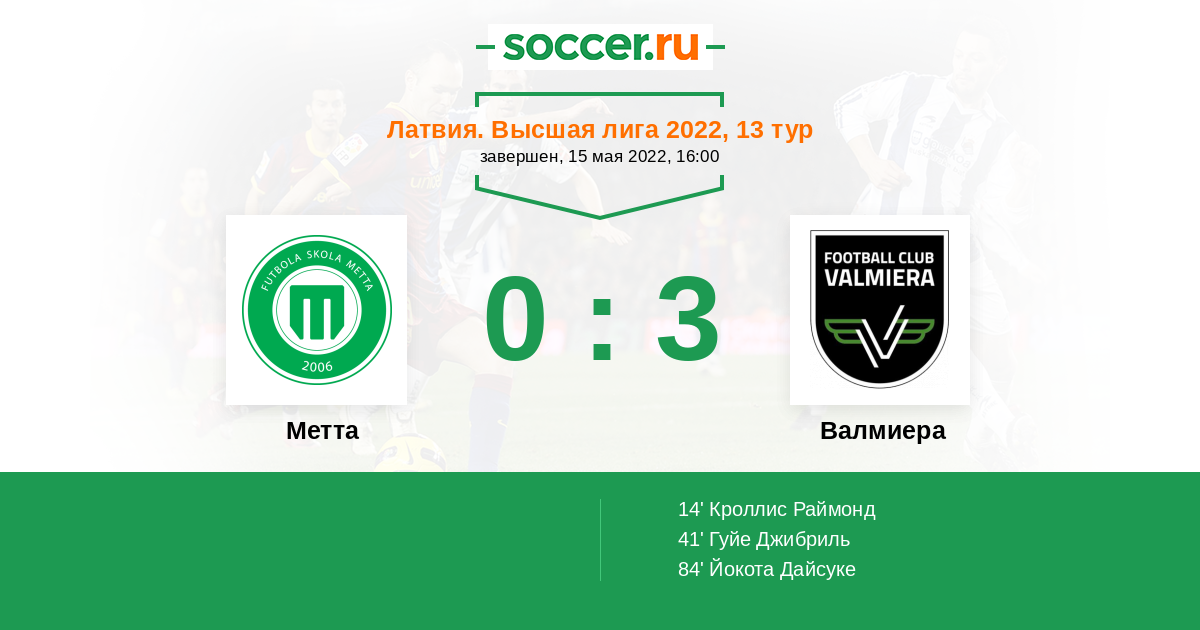 Протокол матча Метта против Валмиера