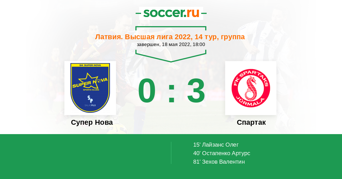 Протокол матча Супер Нова против Спартак