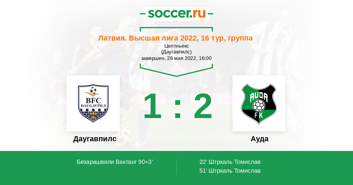 Протокол матча Даугавпилс против Ауда