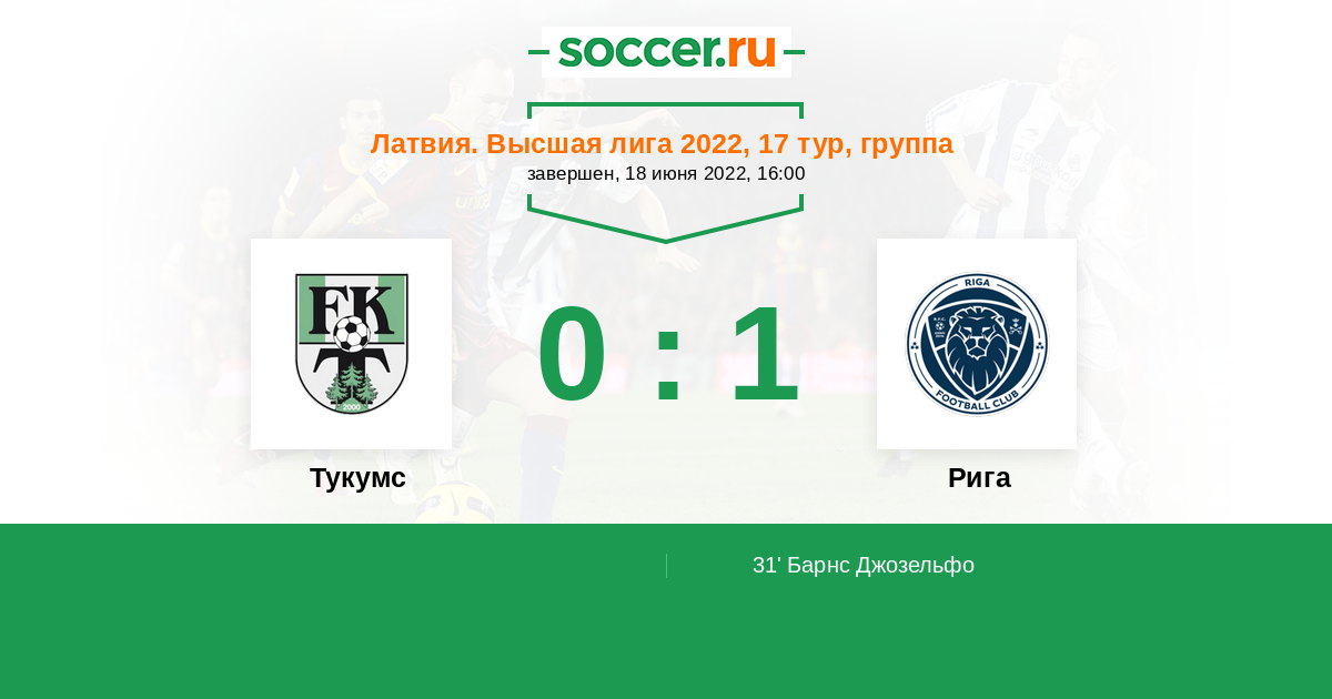 Протокол матча Тукумс против Рига