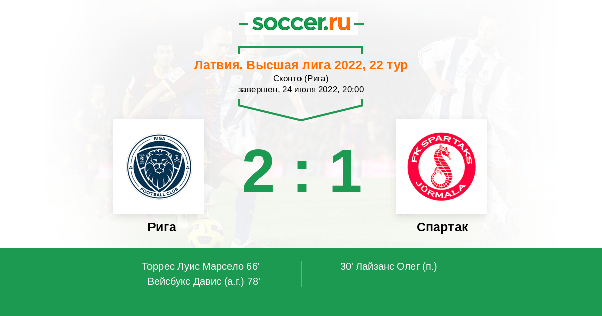 Протокол матча Рига против Спартак