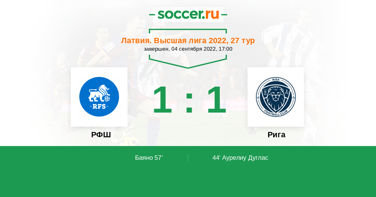 Протокол матча РФШ против Рига
