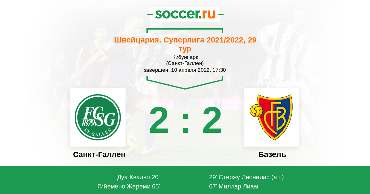 Протокол матча Санкт-Галлен против Базель