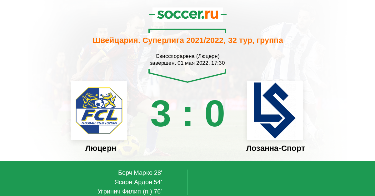 Протокол матча Люцерн против Лозанна-Спорт