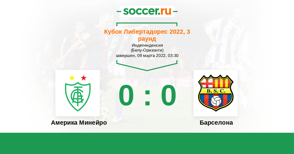 Протокол матча Америка Минейро против Барселона