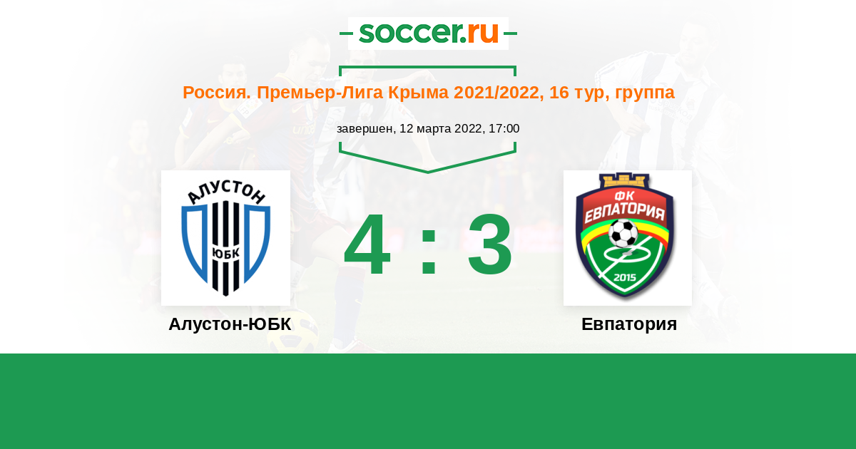 Россия. Премьер-Лига Крыма 04.05.2022 Алустон-ЮБК Логотип футбольный клуб Алустон-ЮБК (Алушта) 1:3 Логотип футбольный клуб Евпатория Евпатория