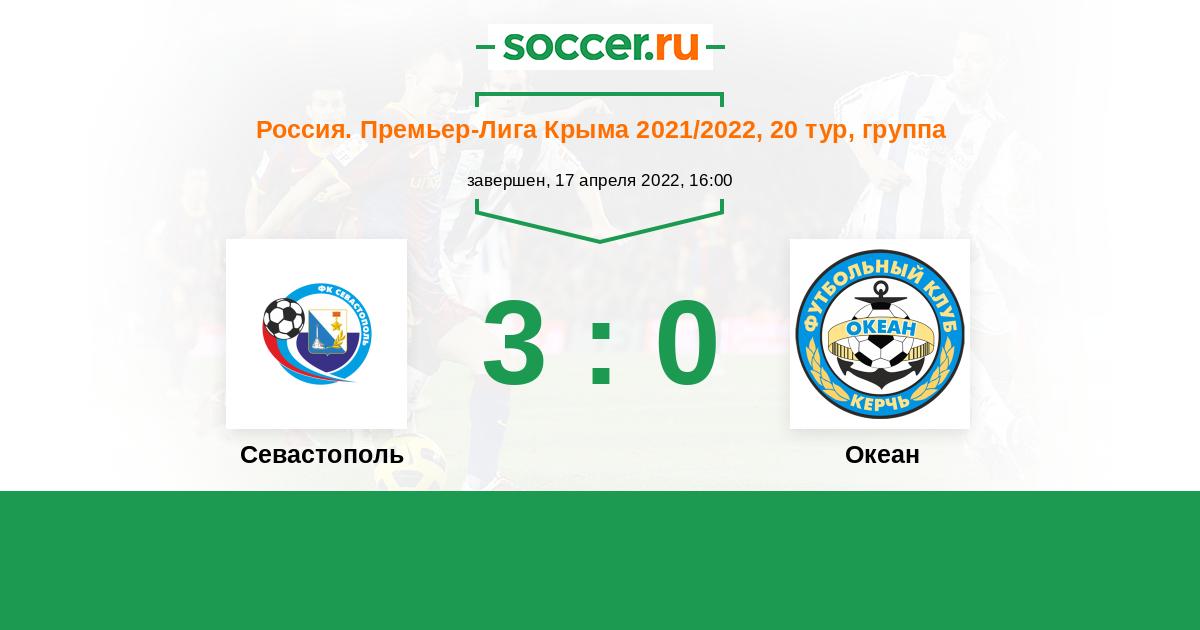 Россия. Премьер-Лига Крыма 17.04.2022 Севастополь Логотип футбольный клуб Севастополь 3:0 Логотип футбольный клуб Океан (Керчь) Океан